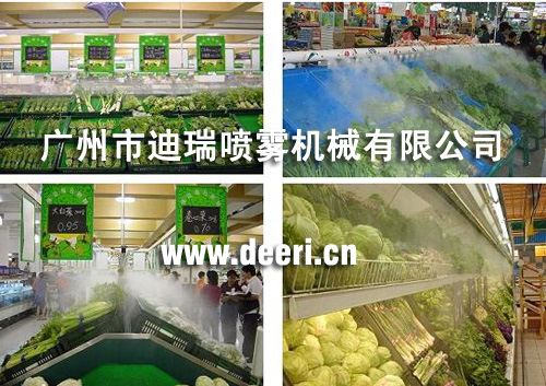 廣州市迪瑞噴霧機械有限公司陸續(xù)在廣東各超市、菜市場安裝了噴霧保鮮系統(tǒng),噴霧裝置利用干凈的自來水充分霧化到蔬菜區(qū),不僅給蔬菜足夠的保鮮濕度以補充蔬菜的水分,還3米范圍內(nèi)溫度會降低6攝氏度左右。