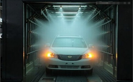 客車防雨密封性是指客車處于靜止狀態(tài), 在規(guī)定的人工噴淋系統(tǒng)試驗條件下, 關(guān)閉全部門、窗和孔口蓋時, 防止雨水進入車廂的能力良好的車身防雨密封性是駕駛員正常工作的條件和客運安全的保證, 更是乘客舒適性的一項基本要求。所以, 研究客車防雨密封性能檢測方法對于增強營運客車的安全性、舒適性和提高汽車綜合性能檢測能力具有重要作用。